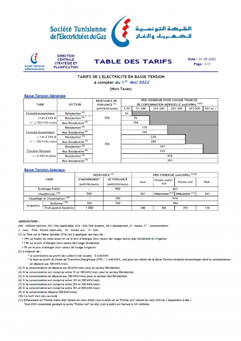 La société tunisienne de l'électricité et du gaz (STEG) a appliqué une nouvelle tarification au niveau de la facturation du gaz naturel et de l'électricité , à des taux variant entre 12.2 et 16% , pour les clients résidentiels et 15% pour les industriels